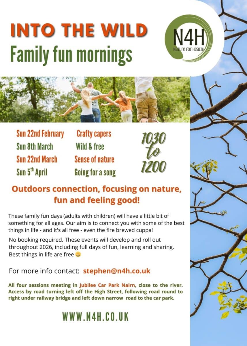 Our new year long programme of events for families in Nairn has had a great start, with 52 folk turning up the last one! Sessions of intergenerational fun activities in nature every two weeks. See poster for details: